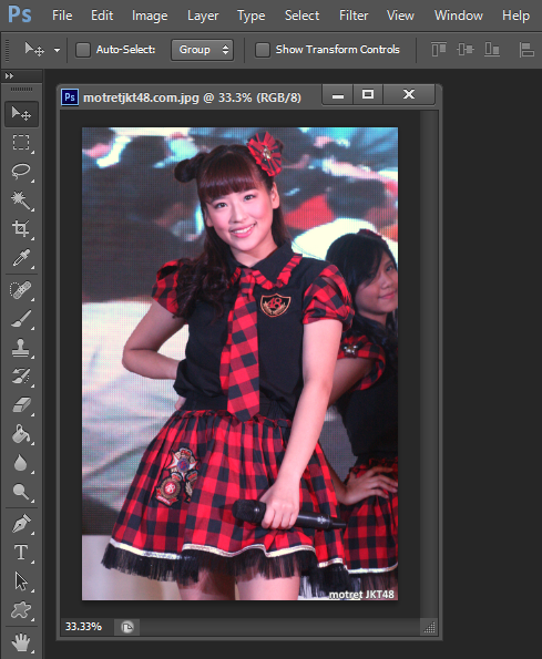 Bukalah gambar yang akan dirobek dengan Photoshop. Kita akan menggunakan foto Haruka JKT48 yang menjadi korban. Maaf ya Haruka :)