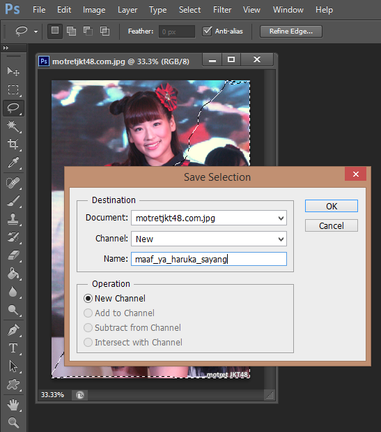 Simpan hasil seleksinya, dengan memilih menu Select > Save Selection.