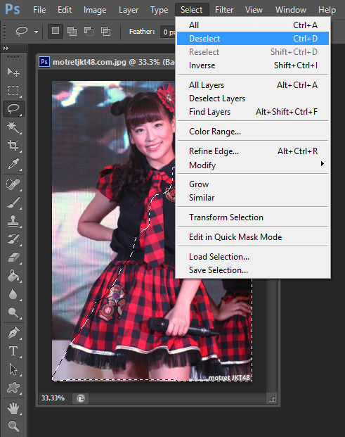 Kemudian hilangkan seleksi, dengan cara memilih menu Select > Deselect.