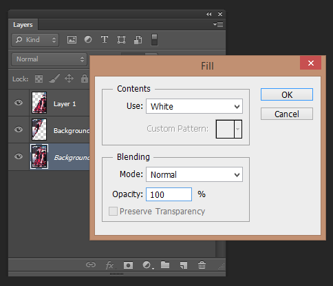Klik atau pilih layer Background. Isi layer ini dengan warna putih.